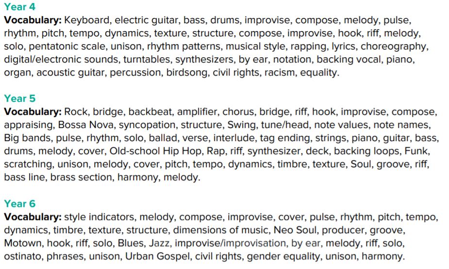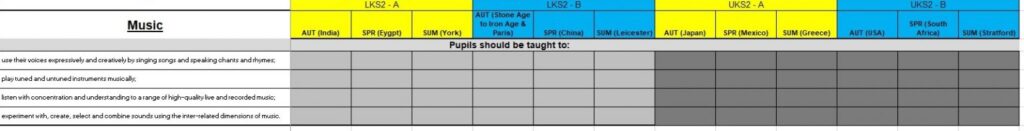 As they move through the school, the children develop their understanding of pulse, rhythm, pitch, tempo, dynamics, timbre and how music is structured. They use this knowledge to compose and perform their own music in small groups.